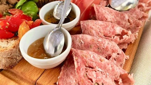 Degustazione di salumi di scarpaccia, pecorini di pienza, crostini misti e confetture di marmellate