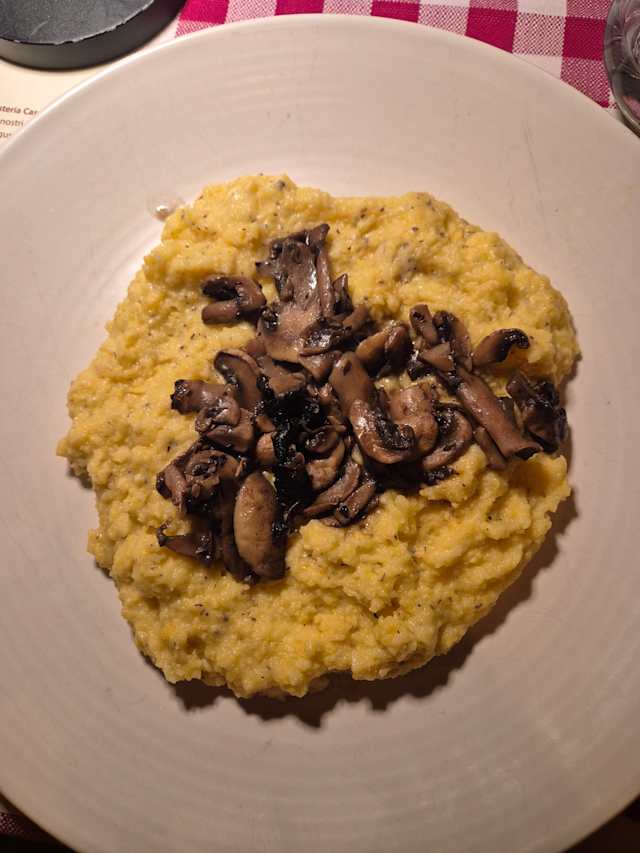 - Polenta taragna di grano saraceno con formaggio bitto e funghi misti del bosco