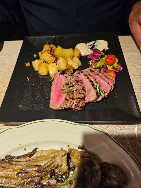 10/10The ambiance at this restaurant was very nice - busy but not too noisy. The staff glided around effortlessly taking care of everyone's needs without being obtrusive. But the food...wow! We ordered the steak and the suckling pig and both were superb. The aroma as the steak was brought to the table was fantastic, it was attractively presented and was cooked to perfection whilst the suckling pig was incredibly moist and tender and the portion was sizeable enough to satisfy the largest of appetites. Being unable to decide, we ordered three desserts between two of us and each was very good. We went for dinner here to celebrate our 37th wedding anniversary and were delighted with all aspects of our evening - thank you to all for making it memorable. Our only disappointment was that we did not have sufficient time for a return visit as there were plenty of further menu options we would have loved to try...maybe one day!
