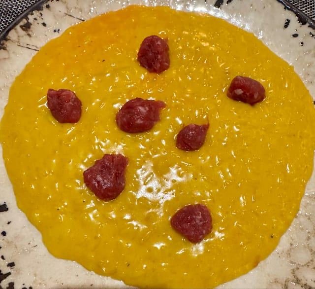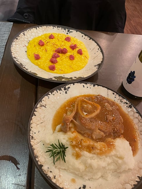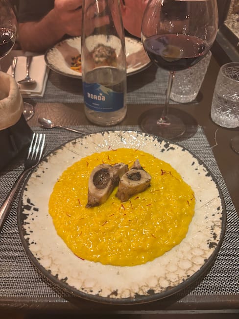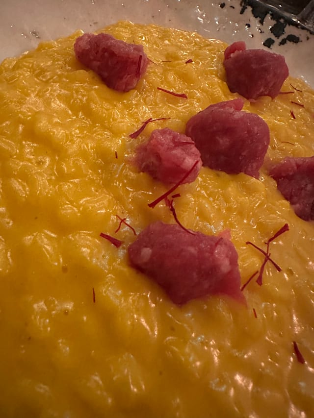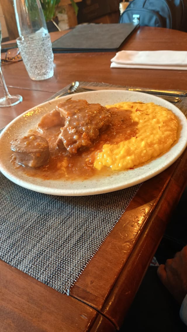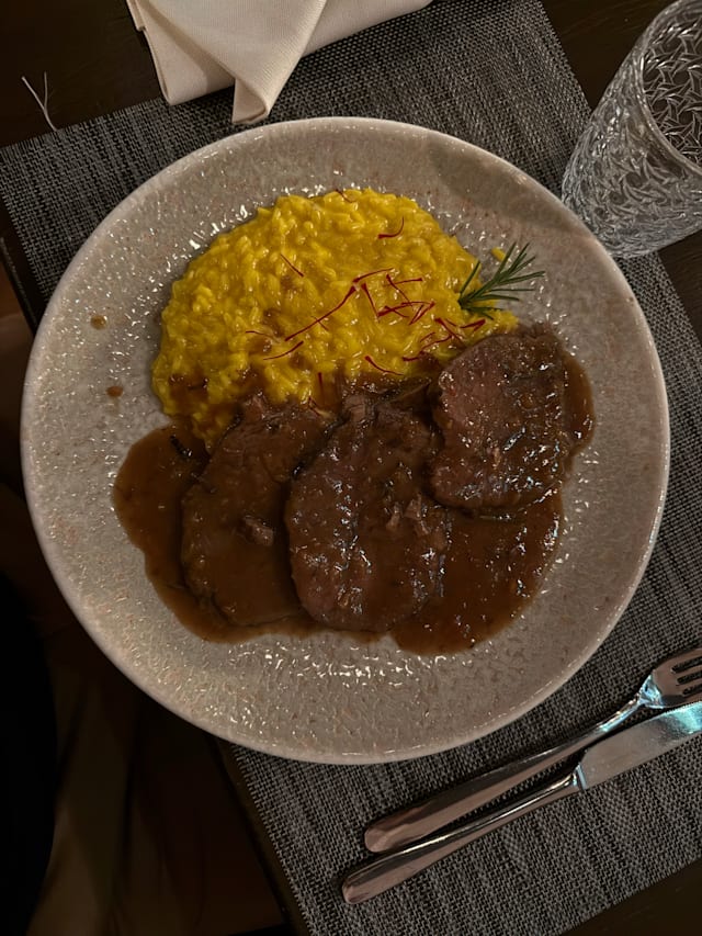 10/10We were treated like royalty! Amazing service from all. Delightful amuse bouche and welcome glass of prosecco. I can’t remember the name of our dish…it was the risotto served tableside from a Parmesan wheel. Outstanding - best risotto of my life. The osso bucco was perfect and had the best, large bone full of marrow. Although we were full, we got the hazelnut gelato and so happy we did. So good! And what a treat at the end of the meal…not the typical lemoncello, but a lovely selection of three liquors to enjoy - lemon, blueberry and mango. We got to meet the chef and share our praise of the meal. We were all over Italy for three weeks and this was our favorite meal of all! We will definitely return here next time we are in Milan and recommend to all of our friends!
