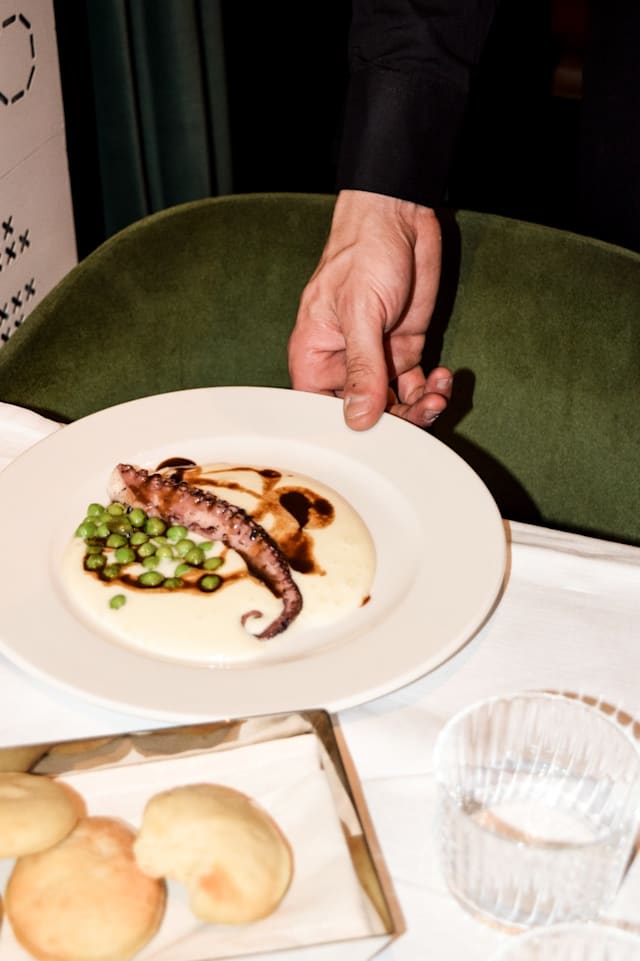 Polpo alla brace con babycarote su cremoso di patate allo zafferano