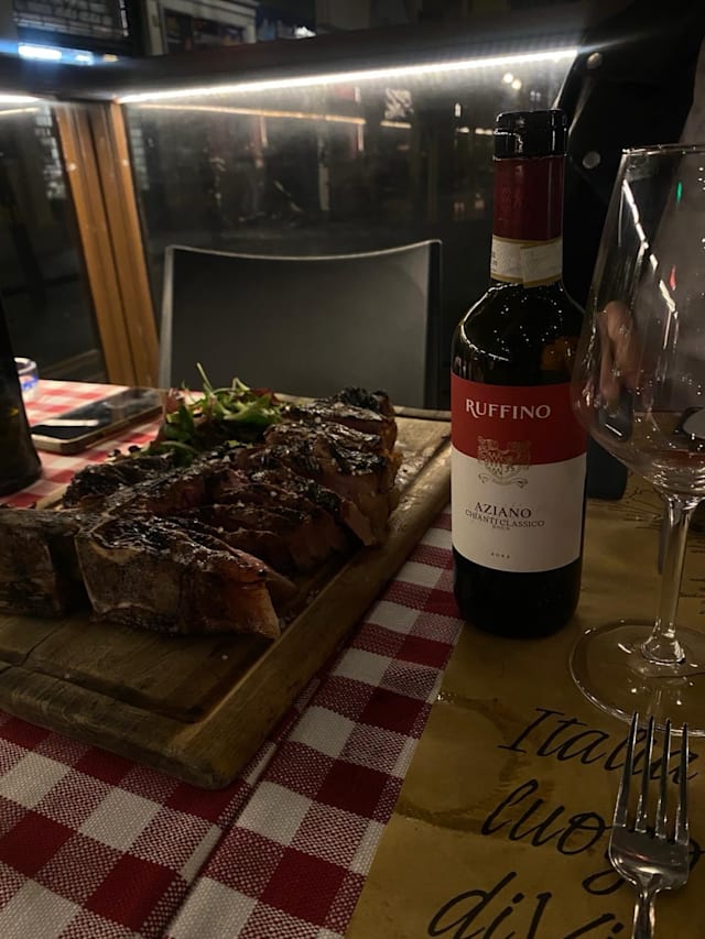 6.5/10Unfortunately there was building constructions ongoing opposite and next to the Osteria. the meat quality of the Bistecca Fiorentina was not as good as in other places. The service was friendly and fast