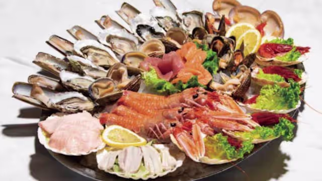 - 4 Pz ostriche, 4 pz scampi, 4 pz gamberi mazzara, bis tartara, 4 pz cannolicchi, 4 pz fasolari, 4 pz cozze, 4 pz noci, 4 pz capesante