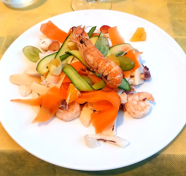 Tradizione culinaria esaltata dall'architettura sconsacrata di un ambiente elegante , dinamico e giovanile . Cucina e cantinetta vini rispecchiano le tradizioni , proiettate verso il futuro . Si chiude l'atmosfera serale con cocktails internazionali .