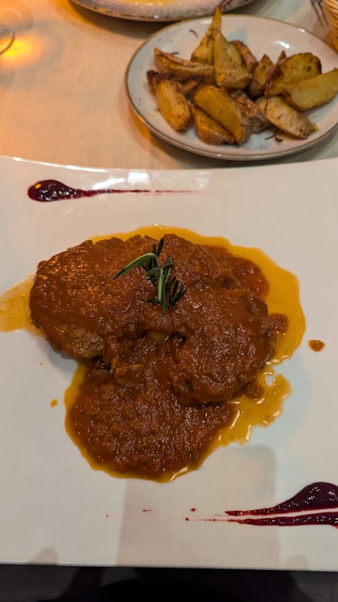 8/10+1we went here for our last meal in Florence, and Italy. The service was good, as the poor young waiter explained that he was on his own, and seemed many customers arrived around the same time. We had bruschetta (is it the Florentines don't use garlic or basil??), which was average (needed more salt too). However the pear tortellini was Divine. I had osso bucco for main, and my friend had the steak with green pepper sauce. Again, both were delicious! Generous portion. We couldn't fit in dessert, but they gave us limoncello at the end.
