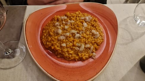 9/10We ordered an entrance of Burrata with slice pears and honey which was tasty. For main course a risotto with shrimp and raviolis. For the dessert we ordered cheesecake, and finally an espresso. The food was good, but not memorable. The portions are relatively small. With a discount of 50% we paid 51 euros (including a bottle of wine of 18 euros).
