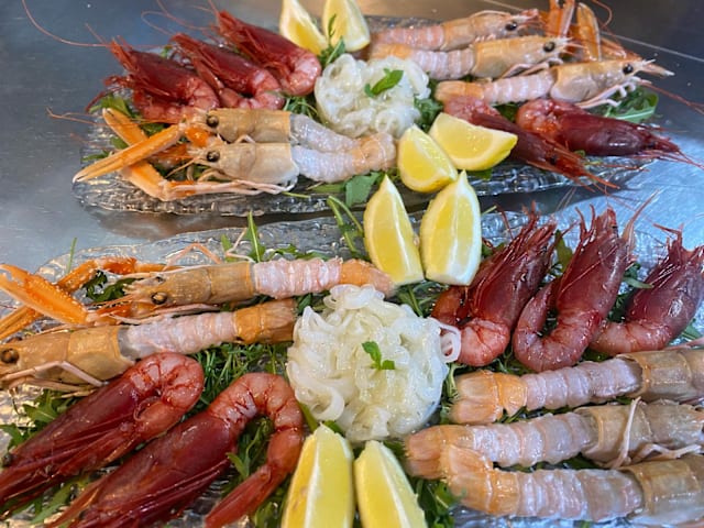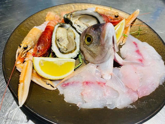 Pesce del giorno servito al guéridon, cotto alla griglia, all’acqua pazza o in crosta di sale. All’etto