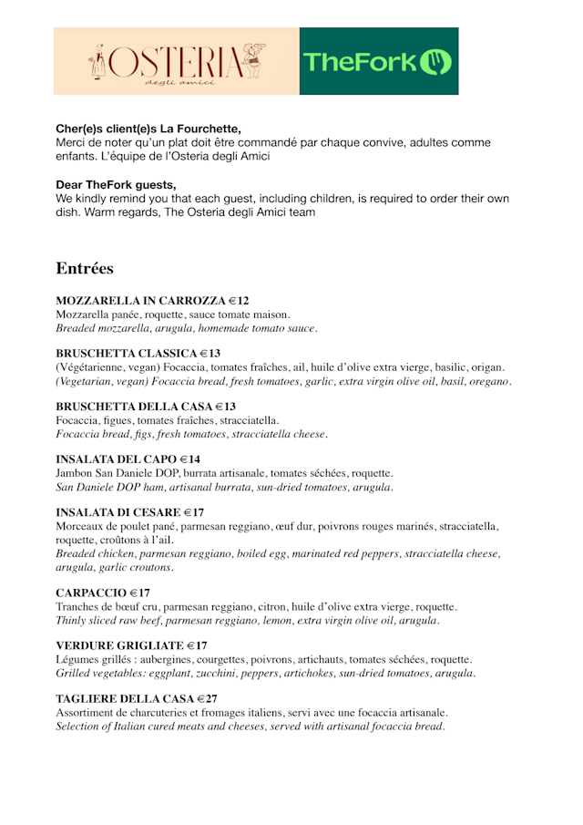 Bonjour Eve, Merci beaucoup pour votre avis enthousiaste ! Nous sommes ravis que vous ayez passé un excellent moment et espérons vous revoir très bientôt à l’Osteria degli Amici. Salvatore