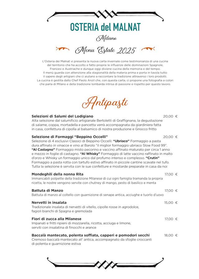 Wonderful staff (same owners as Balabiott). Solid menu with typical Milanese plates. Ambiance is rustic and local; can be a bit loud with poor acoustics but that’s part of the charm. Small but solid wine selection. Highly recommend for Milano.