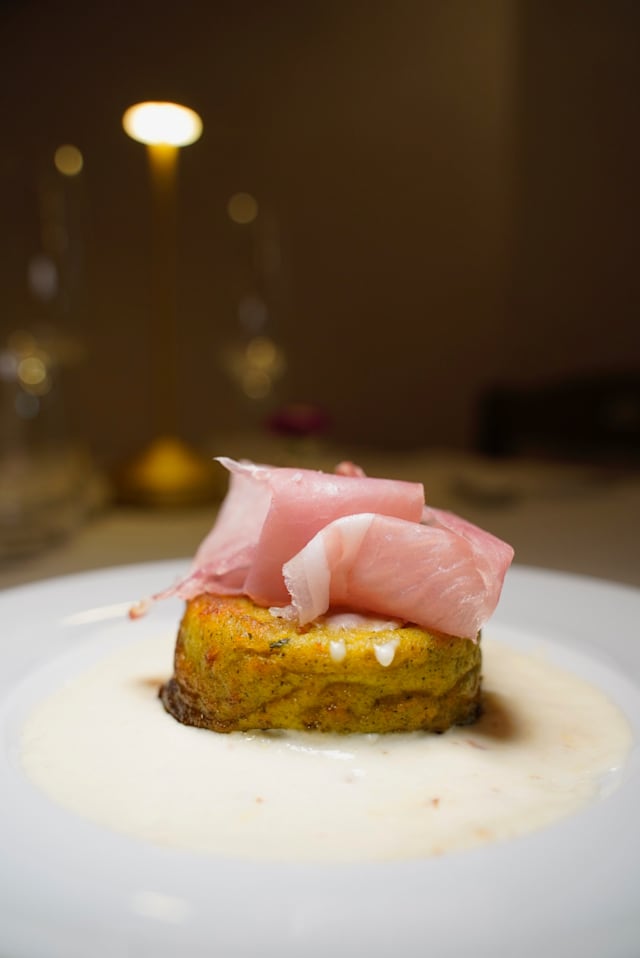 - Flan di zucchine su fonduta di pecorino