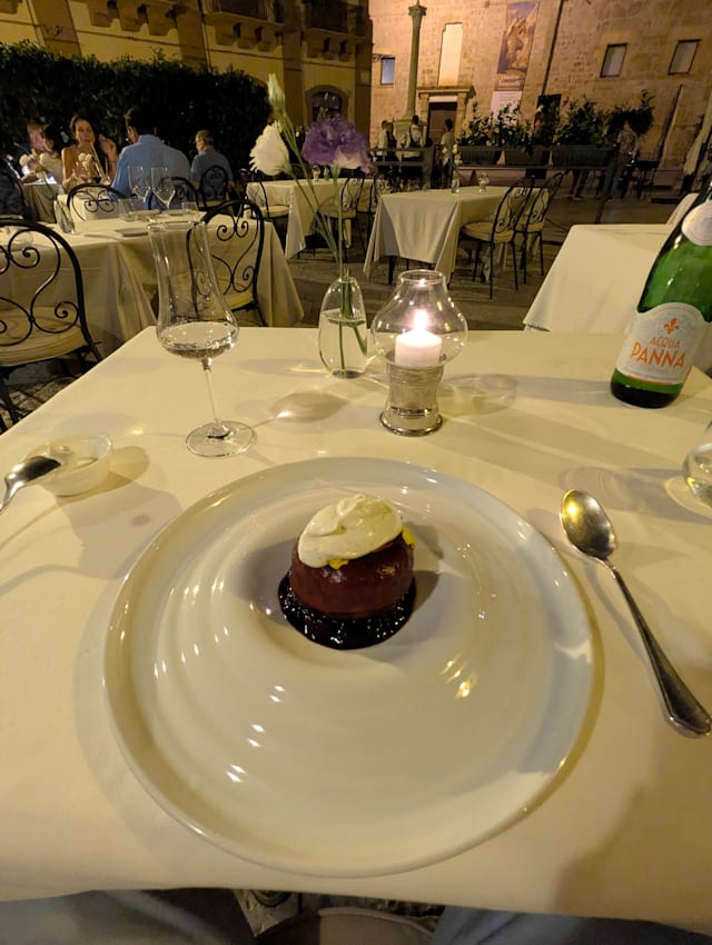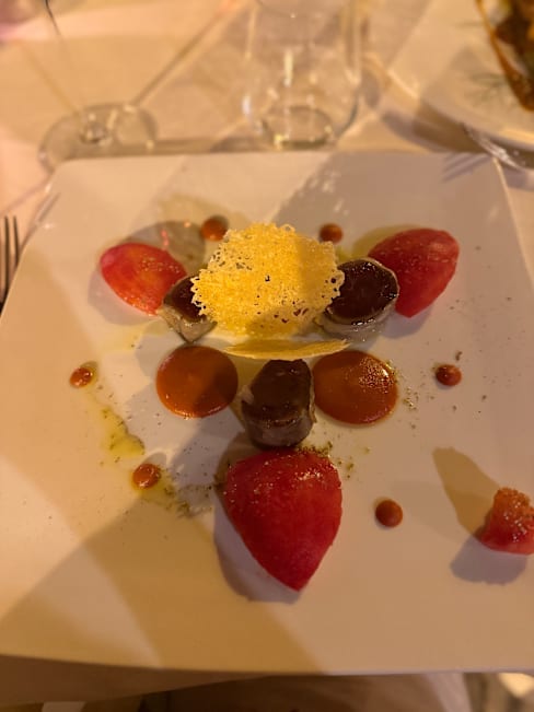 10/10Each dish was amazing. You are required to select at least two courses. I had salad with vegetables in aspic. Delicious!! Followed by grilled lamb. Again delicious. We sat outside. Probably the best meal in Italy so far. Amazing.