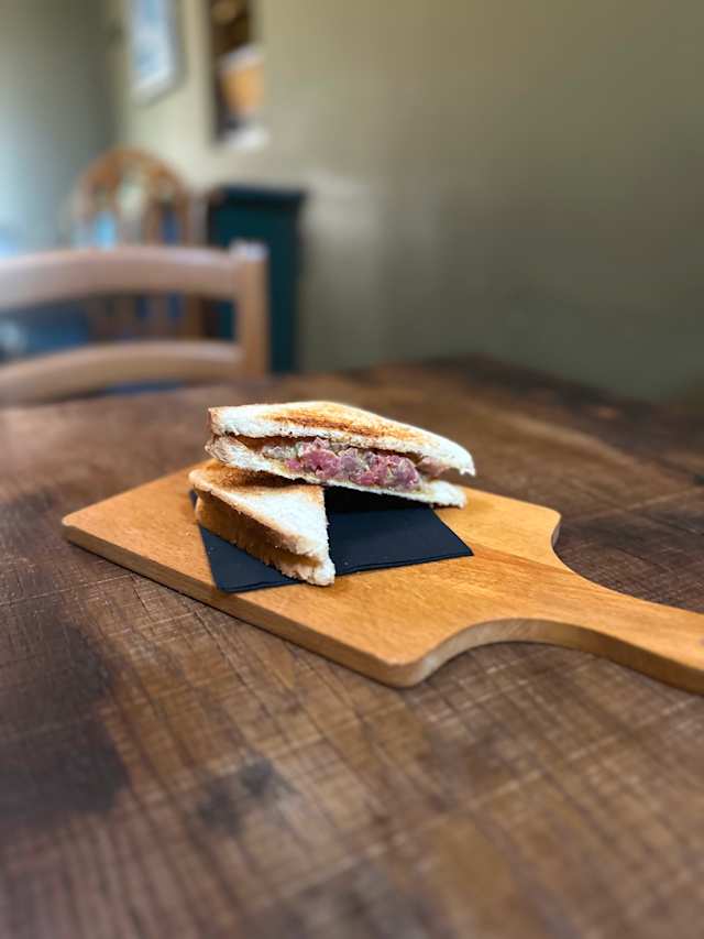 - Toast farcito con battuta di manzo Fassone, scalogno e senape