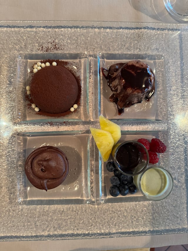 10/10We were 2 couples. We had a wonderful dinner with great wine. The service was great. We enjoyed all of the dishes, and the Ravioli was amazing. My only remark is that the deserts were a bit sweet, but I'm not a sweets person.