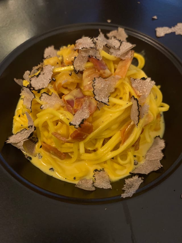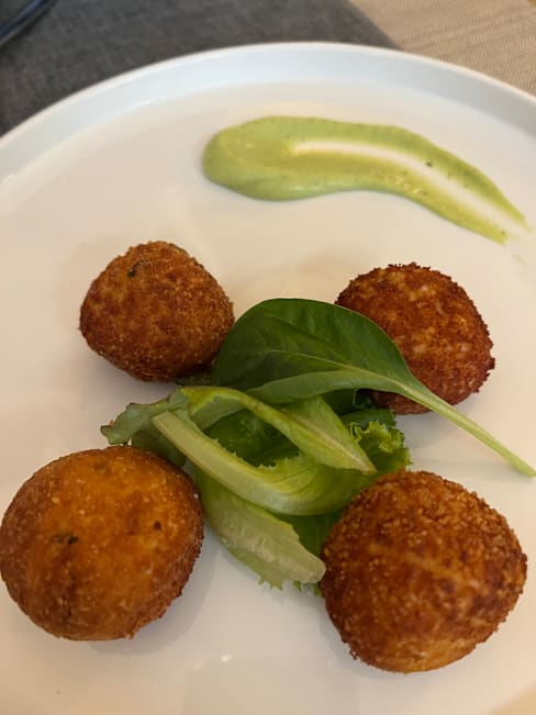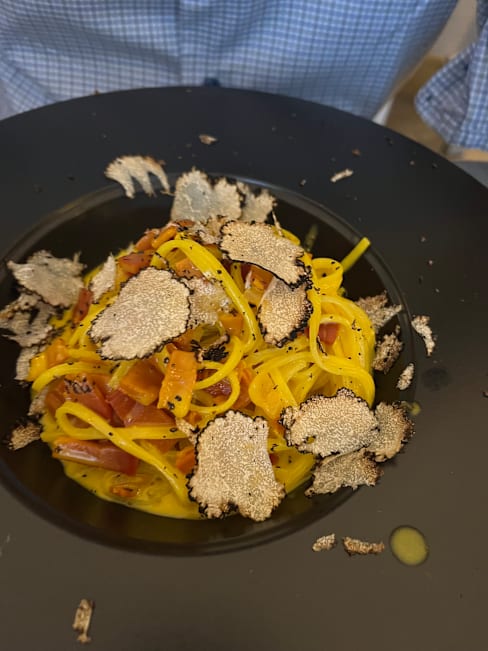 10/10A charming and lovely small osteria with warm and kind service: surprising us with complimentary prosecco and bruschetta! Shellfish croquettes were light and delicious, as were our two excellent and unique pastas: tagliolini with saffron, speck and summer truffle; spaghetti with zucchini flowers, clams and bottarga! Our gracious server also personally recommended the homemade, light ricotta cake with chocolate/hazelnut topping, served warm with vanilla gelato. Delicious and delightful!