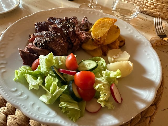 3.5/10The hostess was not very friendly. Our dinner (starters and main course) was served at the same time, We also found hairs and plastic in our dinner. We just had the feeling we were not very welcome because we were no hotel guests. We definitely had a different treatment of the hostess.