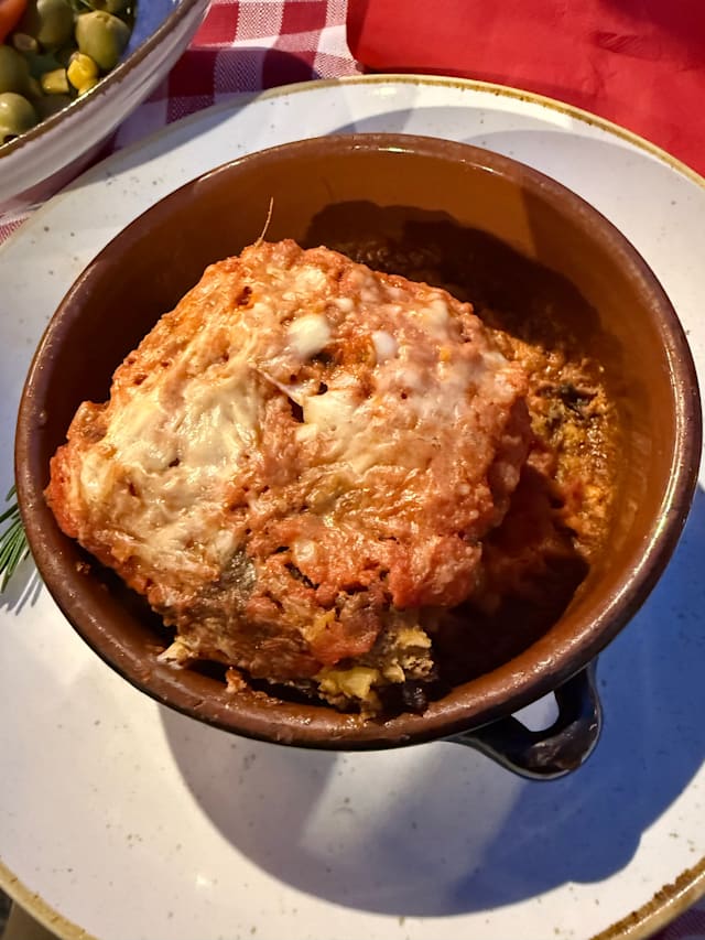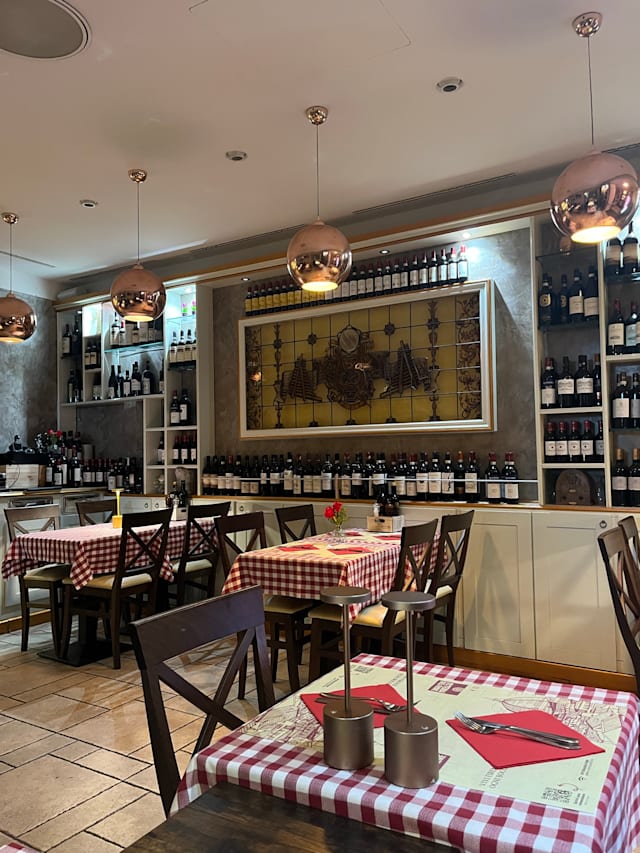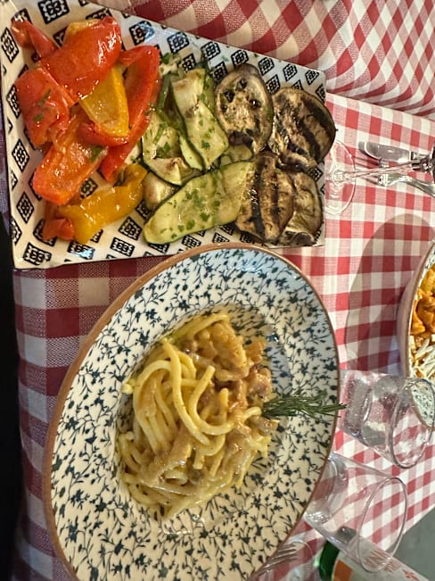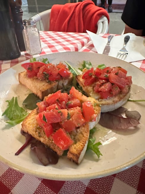 6.5/10The food was very average, not worth it for the price in my opinion. The risotto funghi tasted too much like bouillon cube, the pappa al pomodoro had too much pepper and was almost cold, the pasta in the lasagna was overcooked and the pizza was super average. The best part was the complimentary limoncello shot the host gave us as courtesy for treating me like shit at the entry when he thought I was "just a tourist" asking for directions" :) Good restroom and overall ambiance though.