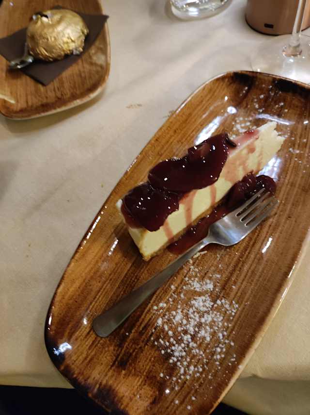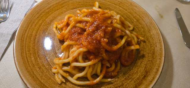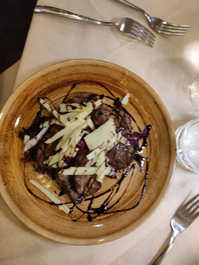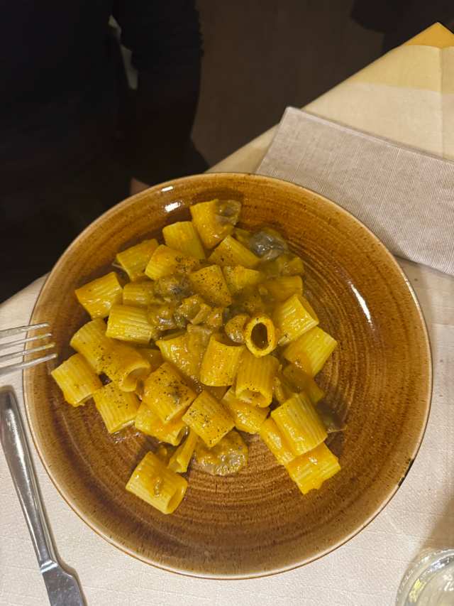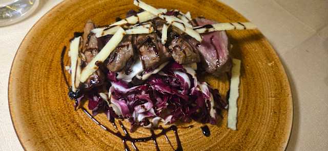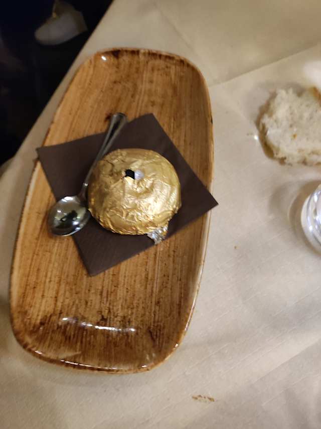 9/10A mixed dining dining experience at Osterio di Gusto. Made early reservation through Fork. First courses mezza maniche with mushroom (mediocre) and pappardelle alla cinghiale (delicious). For second, my husband had the grilled chicken dish with a lemony flavor and tender. I had a insalata, generous and fresh. My husband enjoyed the cheesecake. I had the kiss dish which was basically a type of eskimo pie and a second disappointment for me. Feel that with better choices this could be as posiitive a dining experience for me as it was for my husband enjoyed. Right paced, friendly English speaking staff. Somehow I got a discount because of my Fork reservation.