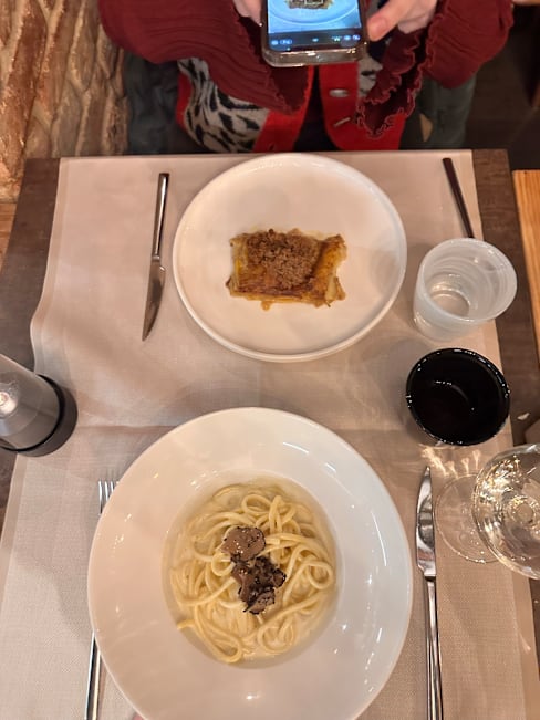 7.5/10The food wasn’t as good as we expected to be. We ordered pasta with carpaccio truffle and pecorino sauce and lasagna. My pasta was full of milky sauce and lasagna too. The service was fast and good, and the waiters were speaking english really well.