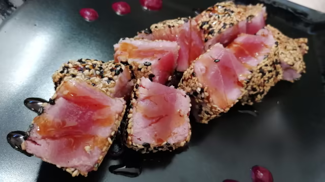 - Tonno in doppio sesamo tostato e gocce di teriyaki