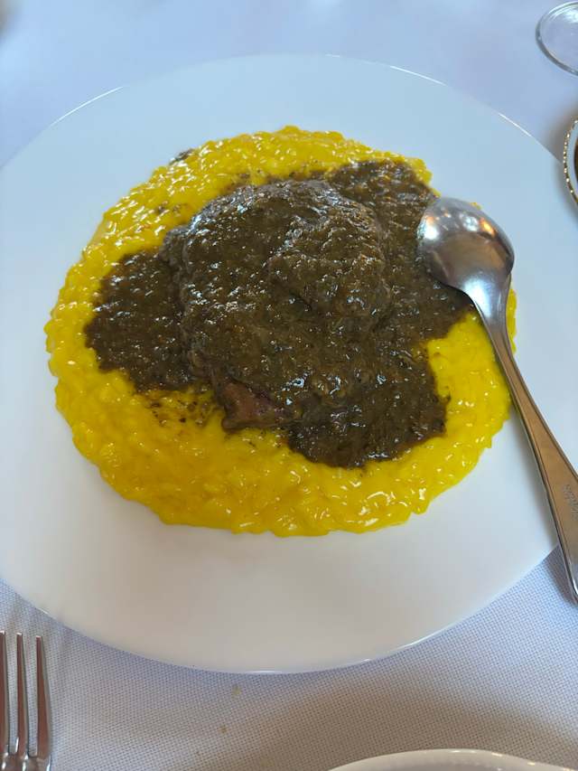 Risotto alla milanese con ossobuco di vitello in gremolada