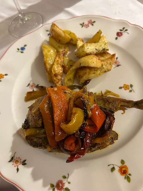 5/10Good fried starters (the only good thing of the dinner), pasta was very plane in flavours, the pork stew was swimming in oil and the greens were disgusting (frozen and full of water). The waiters were the teenagers of the village and they had no idea about how to serve at tables so the boss was complaining and talking badly to them all the time. The location is wonderful, but if you want to do yourself a favour visit it after dinner! 😉