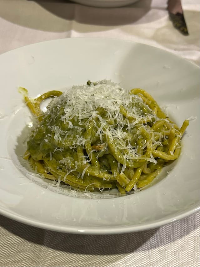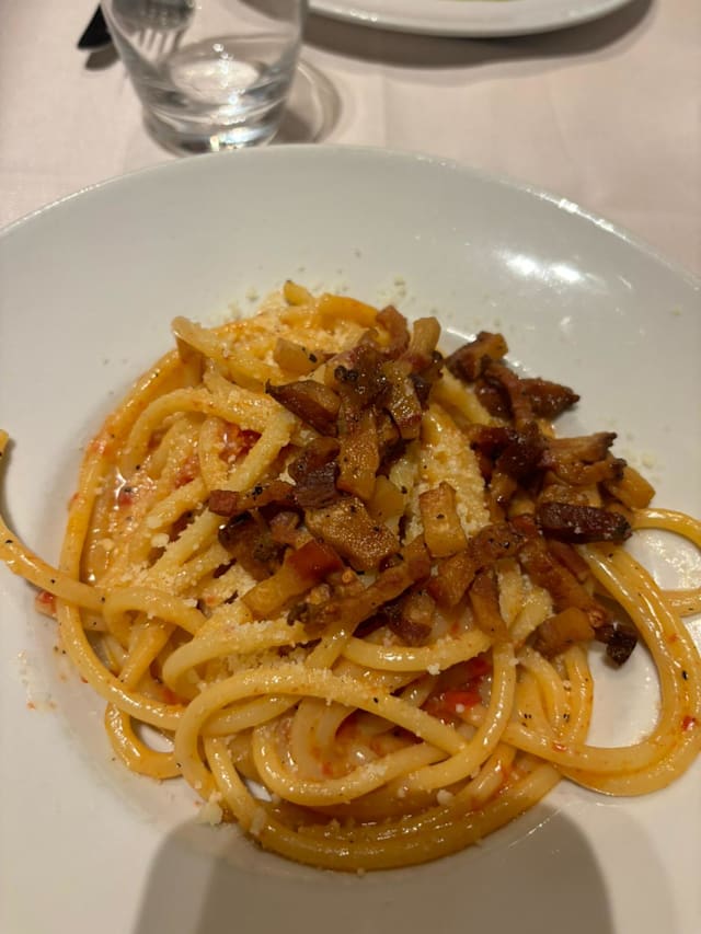 10/10We stayed in Rome for 4 weeks and ate here twice. Nicoletta, the co-owner and sommelier, is delightful. We especially appreciated her wine parings. The preparation of food is refined. The dining room is tastefully decorated, intimate, and has a fabulous arched brick cieling. They are inspired by cuisine throughout Itally vs. focusing on simply Rome. The menu when we were there had takes on "matriciana" and "cacio & pepe". We also enjoyed a delicious roman salad with baby lettuce, fava beans, spring peas, and crisp green beans.