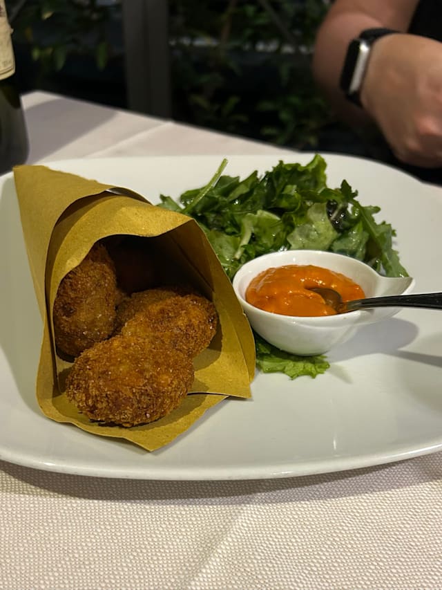 8.5/10The 2 waitresses were a delight. Very fast, helpful and seamlessly flowing from English to Italian. The lovely starters and bites for dessert on the House were unexpected and delicious. Food was good and interesting. Menu small but unique and daily specials add to it. I will go back to try additional dishes!