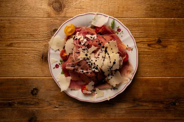 - Carpaccio di manzo con rucola e pomodorini