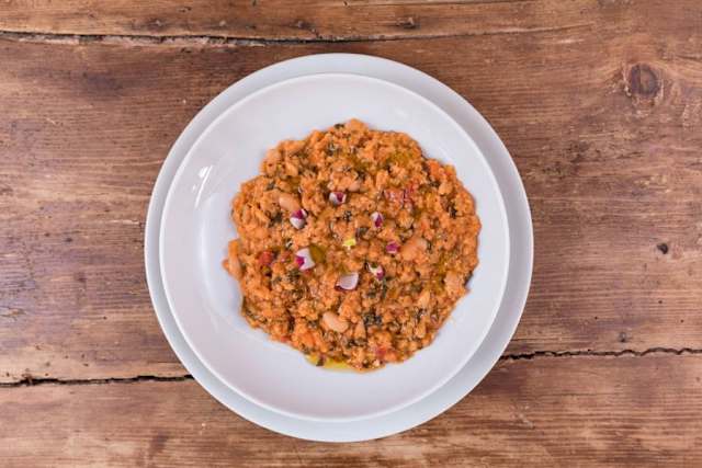 - Sformatino di cavolo nero con purea di ceci e mandorle tostate