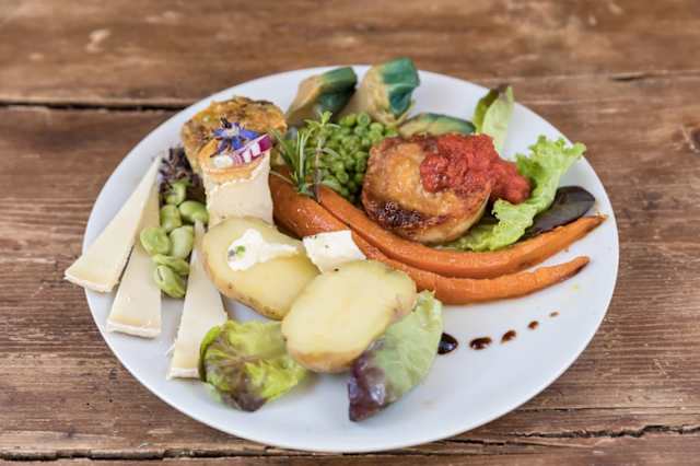 - Verdure del nostro orto cotte al forno con fonduta di pecorino di fossa e frutta secca tostata