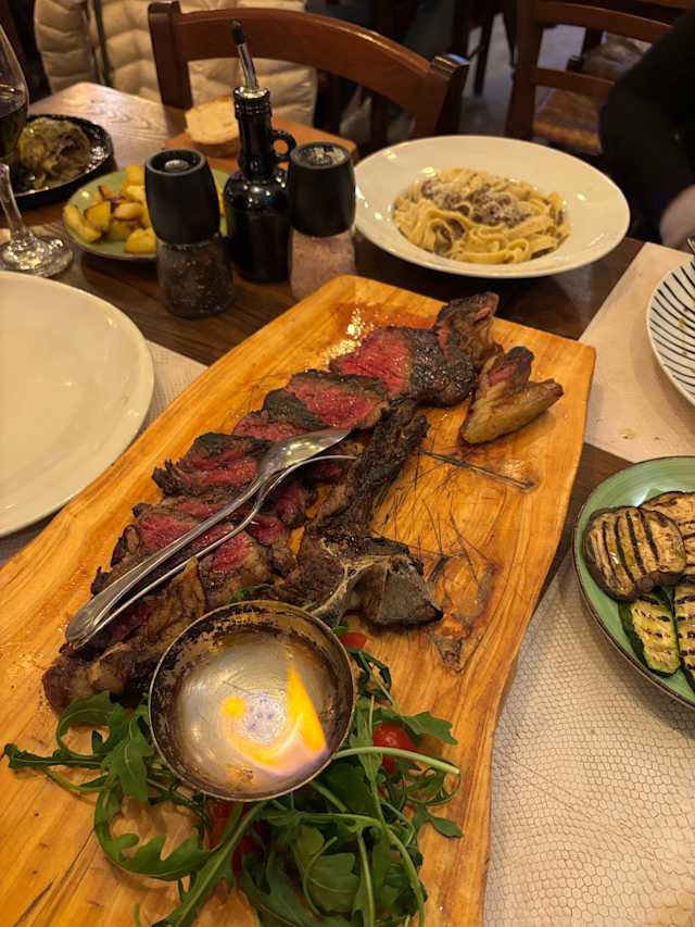 9/10Without the Fork, the price would've been a tad high. With the 50% discount, however, the place is simply incredible, and I'd recommend it to anyone. The food (almost everything on the menu is meat-based, understandably) is great and everything has its own flavor and "personality". The starters are varied and well-thought, and all the meat plates we tried were extremely good. They had us try their own oil which, alongside the tasty bread, made for a great appetizer. Also, the atmosphere and service both deserved praise. It doesn't hurt that the restaurant is in a beautiful place where (a miracle by Rome's standards) finding a parking slot is easy and quick either. All in all, an excellent experience. Congratulations!