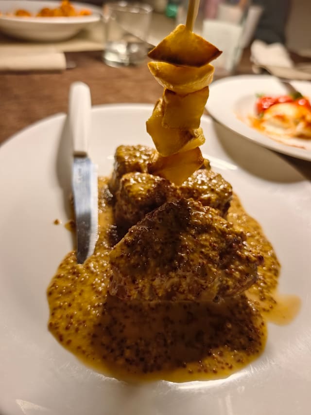 8/10Lovely restaurant with great character. Plenty of options for my gluten free diet. The only disappointment was a young waiter who said I could not have any 'alternative' potatoes (baked potates were not provided due to cross contamination), so I had some beautiful pork, but nothing to accompany it. My husband had a delicious tuna pasta dish. The burrata antipasto and the mussel soup were equally good.
