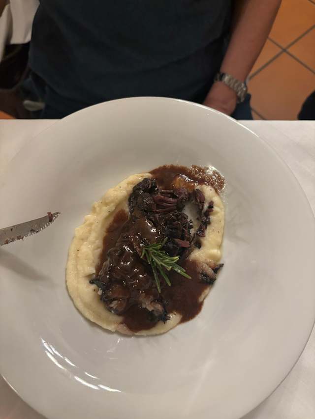 - Cipolla gialla caramellata, crema di parmigiano e tartufo nero