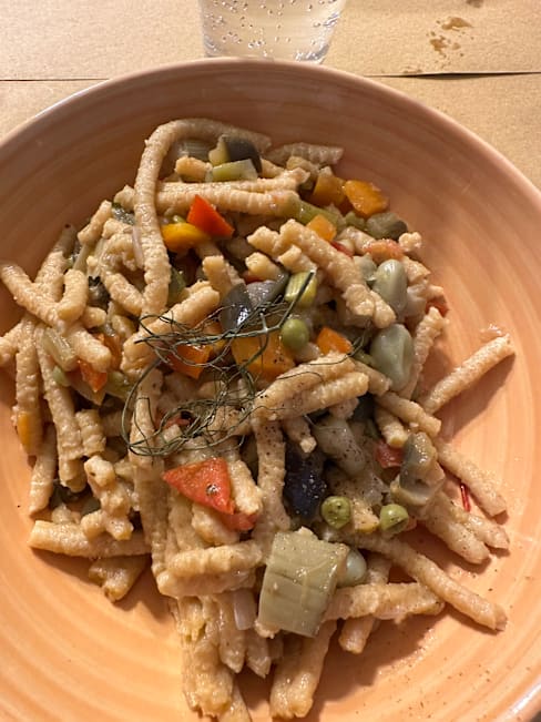 10/10From the photos and reviews I was looking forward to coming here. And I'm so glad I booked! Even though it was a Tuesday lunchtime, it was quite popular! From the minute we stepped in, we felt welcome. The 'benvenuto' of freshly baked 'griselle' focaccia were scrumptious. We shared gnocchi to start followed by two main meals. No room for dessert - we'll leave some space next time. If you're looking for something with a cozy inside atmosphere with great service, interesting menu and a fabulous kitchen, this is your next place to be. Oh and there was even a little chair for my bag. Little touches like that are all throughout this Osteria.