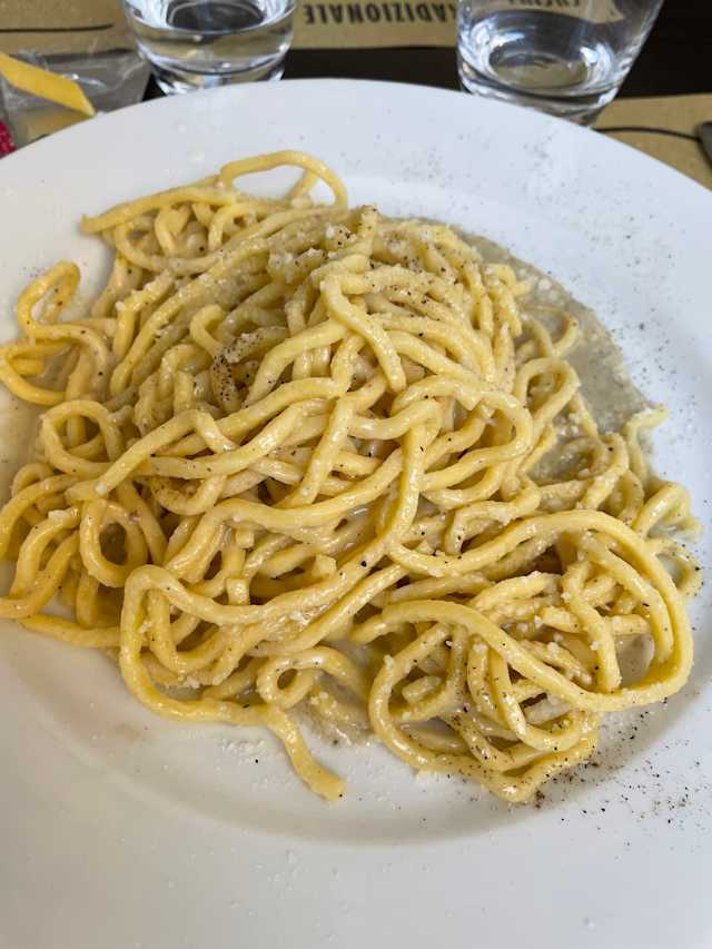 9/10Spaghetti with sea bass, cherry tomatoes and zucchini was excellent. Perfect location very near entrance to the Vatican Museum. Although this is a tourist area, the food was so good and the cost,reasonable.
