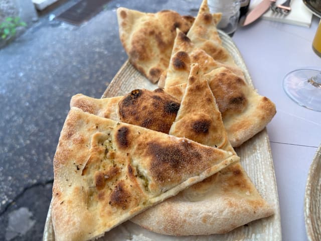 7.5/10When booking not offered outside seating and they would not accommodate us when asked. Shame - there was space there the entire time we were in the restaurant. Do not think we were the correct demographic for the lovely folks sitting outside. Bits were amazing. - order lots - tonnes of flavour, interesting, etc. It was a shame that our pasta dishes arrived whilst still enjoying the starters. Pasta nice although not as good as bits. After pasta no offer of dessert menu. Sort of felt forgotten. Lovely spot with some fixable issues.