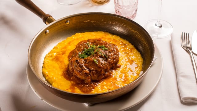 Ossobuco di vitello, gremolada e risotto alla milanese