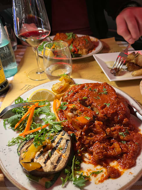 10/10What a lovely restaurant! This is our first evening in Florence and it will be hard to top this meal. We had an outside table so we could enjoy the Florentine ambience. We just decided to have a main - the ossobuco with sides of grilled vegetables and roast potatoes - which was just as well as the portions were very generous. It was delicious. The drinks choice is very good and we were very pleased to see that half bottles of wine were on offer as I only like white and my husband only likes red! Both bottles were excellent. To help us digest our lovely meal, we were offered complimentary digestifs - Amaro - which was new to me but also delicious. Overall, a great experience.