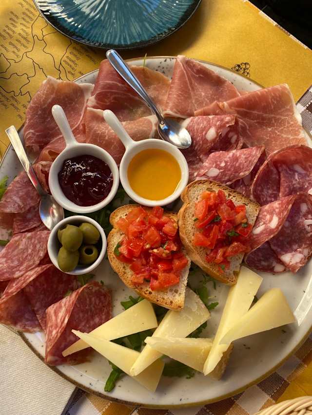 - Salame toscano, finocchiona, prosciutto crudo toscano, soprassata, pecorino toscano, salse, bruschetta