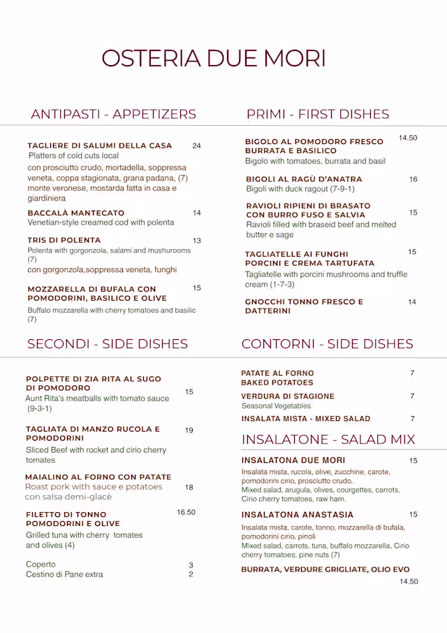 We loved our visit to Due Mori. We were tired travellers, just arrived in Verona and we needed a great place to eat and relax. The staff looked after us really well and there was a lovely selection of tasty dishes. We look forward to returning there next time we visit.