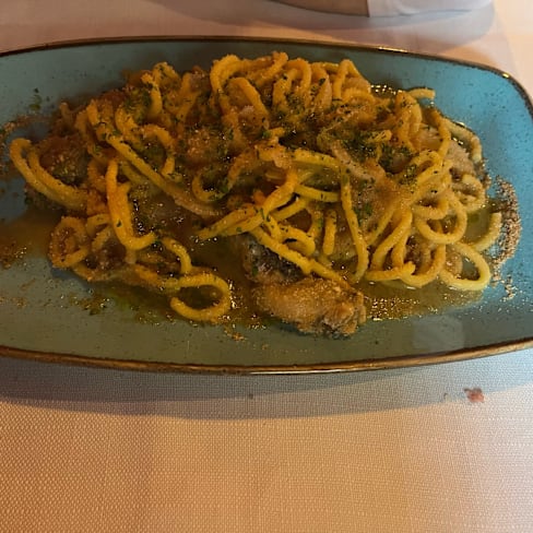 7/10We tried several dishes, and the one clear winner was the pumpkin stuffed pasta, which we had as an appetizer. It was great and we were excited for the rest of the offerings until the food arrived. The rest of the dishes were just not well done. The tagliatelle with mushrooms and truffle cream sauce was very bland and was overpowered by the truffle oil, and the Cacio e Pepe was not right. It had none of the creamy cheese sauce you would expect. And the tuna was way overcooked—not even a little pink and I was expecting it to be lightly seared. Overall, we were disappointed after such a great start with the pumpkin filled pasta.