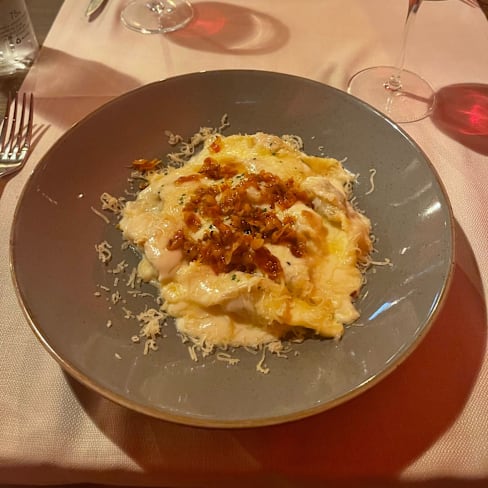 10/10Very lovely restaurant with traditional cuisine at reasonable prices for the quality. We had the beef cheeks in red wine sauce on polenta (amazing) and lasagne al forno (very tasty as well). The wines by the glass are a priced a bit higher (7+ euros), but you can get a bottle at around 30+ euros, so still very modest. For two main dishes, one shared dessert and two glasses of wine, we paid just over 60 euros in total. The restaurant has a distinctly cozy, calm and romantic atmosphere as well and the staff was discreet and warm. We highly recommend this restaurant!
