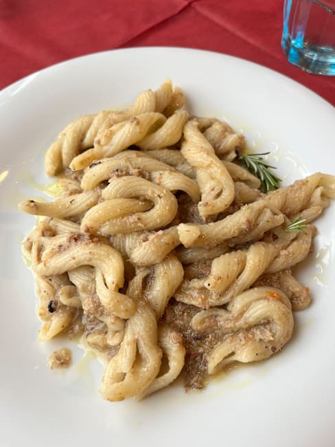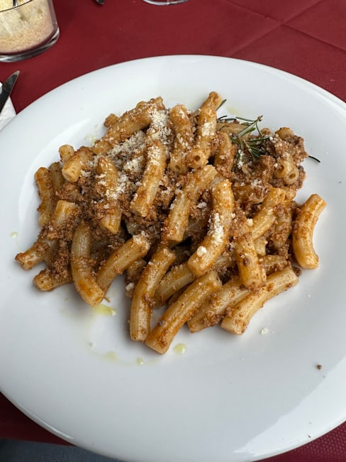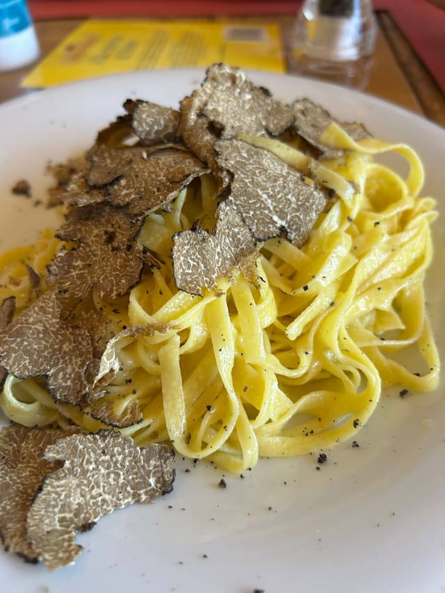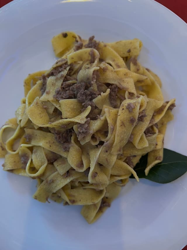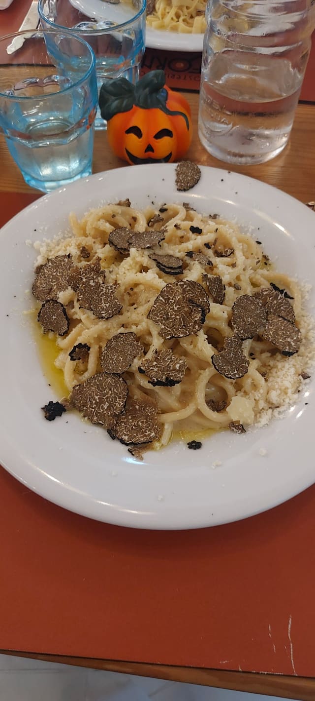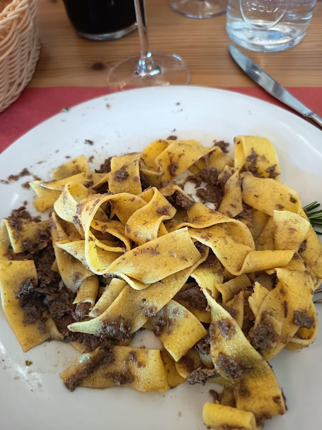 8.5/10The restaurant is located just overseeing some beautiful views of the city surroundings. The service is good, and the food was nice too, especially our first courses, which were picci caccio e pepe con tartufo nero and Pappardelle al ragù di cinghiale. We didn’t really enjoy the second course: Cinghiale in umido con olive nere since it was a bit too dry. On the overall, it was nice, but maybe we expected a bit more from it.