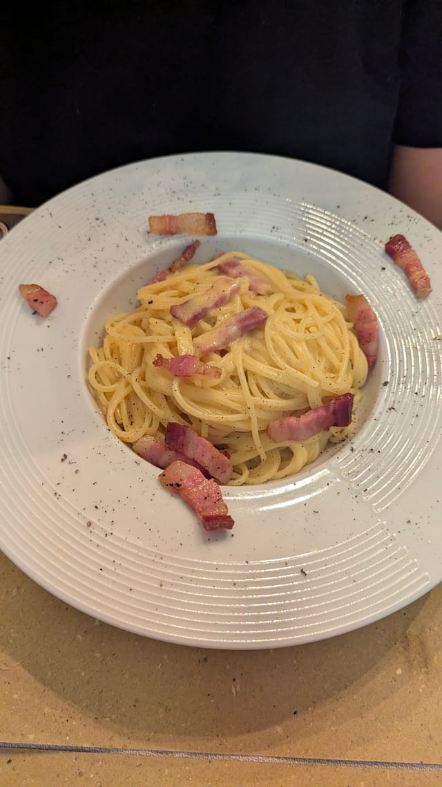 10/10Situated in a side street with a view to the Duomo. Offered tables inside or outside, which we took as it was a lovely evening. Very friendly and engaging waiters, great English spoken too. great selection of dishes on menu at very good prices. We shared an antipasti of bruschetta, 3 of which I enjoyed !! The fourth .. hmm not so much 😂 delicious plates of pasta .. arrabiata for my hubby which was perfectly seasoned and with heat which he loved. Mine was the carbonara .. my first of this trip and was delicioso ! I saved space for a dessert of tiramisu which was just a heavenly end to our meal. .. apart from the complimentary limoncello which just finished the whole experience wonderfully. We watched a large wedding party stroll down the street which made for an authentic Italian evening out. Will definitely return if we get chance this time, depending where we spend our next two days. But can wholly recommend .. pizzas looked great too .. as did the bistecca fiorentina on next table