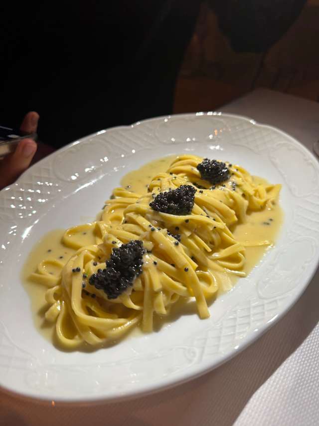 - Fettuccine con crema di parmigiano nella forma e tartufo fresco di stagione