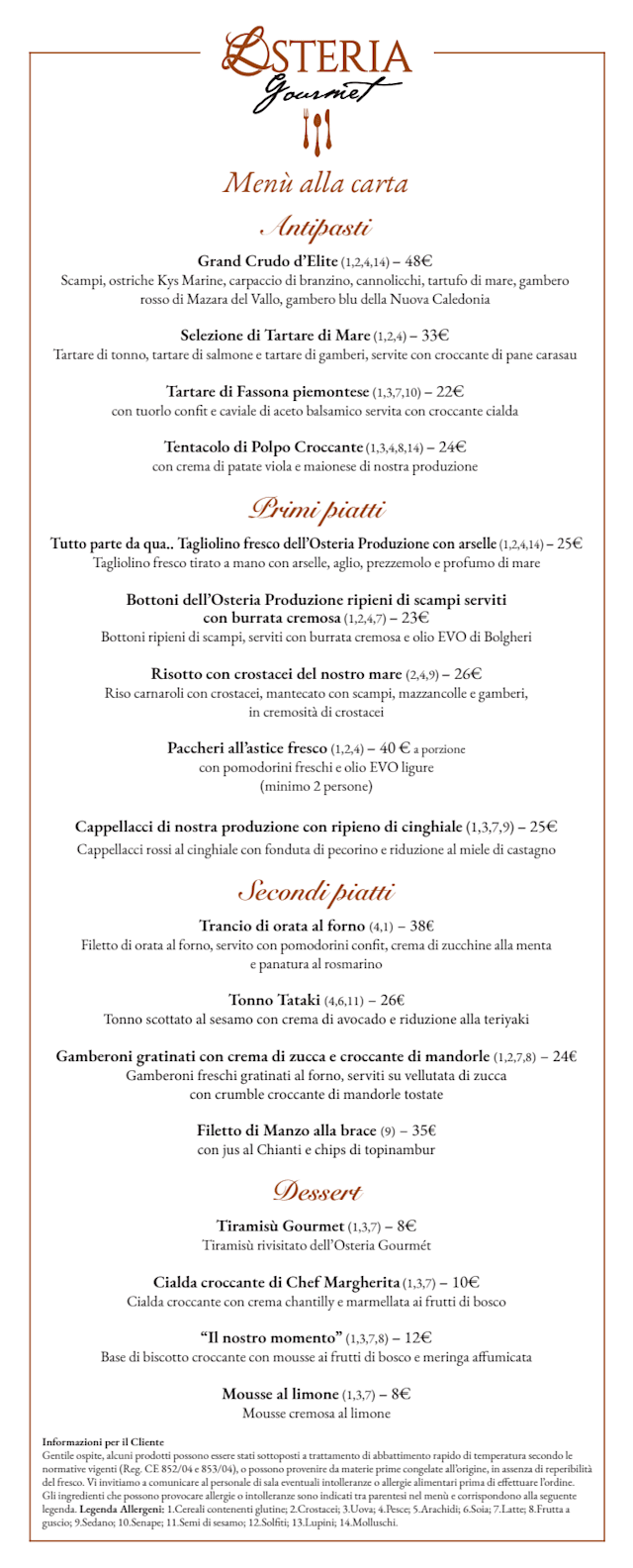 Yes, Osteria gourmet is offering 20% off the 'a la carte' menu Reserve your table and enjoy your special discount now on TheFork!