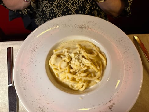 7/10What a disappointment it was. Yes the food was great but let's be honest, it's Italy; you can find great food under your bed. Our main issue is that we were kicked out before we were done with our meal because they "reserved our table" to someone else... Now let me be clear, we were not taking our time; it took more than 30 minutes after our arrival to get the appetizers. Then, as soon we finished the main course and we were ready to order dessert, an employee came to our table and basically asked us to leave. And know that we ordered expensive plate and one of the most expensive wine in the menu. It's not like we only ordered two coffee and stayed all evening. We had a reservation and no one told us at our arrival that the time was an issue. So we ended up chugging the remaining of our wine bottle and leave. I will never go back to this restaurant and I advice you to go somewhere else, to a place where you will feel welcome, not rush and respect as a client.