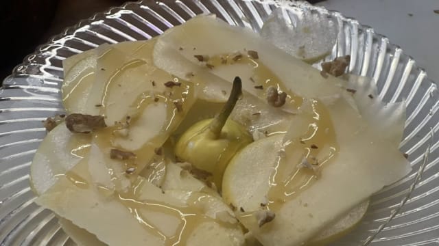 - Carpaccio di pere, pecorino, noci e miele