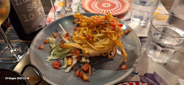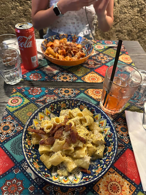 10/10The atmosphere was cozy and authentic. Our hostess/server was very nice and forgiving of our poor attempts at speaking Italian. We had delicious pasta dishes and the hostess gave us free limoncello/ amaro shots at the end of the meal. It’s a tucked away spot , not touristy. Definitely recommend.