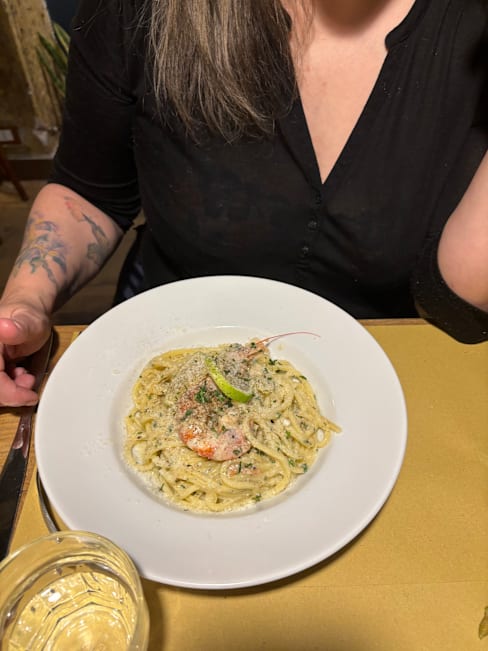 10/10The atmosphere was cozy and authentic. Our hostess/server was very nice and forgiving of our poor attempts at speaking Italian. We had delicious pasta dishes and the hostess gave us free limoncello/ amaro shots at the end of the meal. It’s a tucked away spot , not touristy. Definitely recommend.